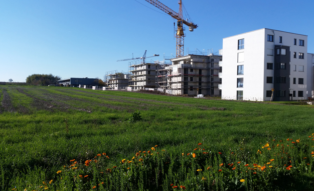 Oktober 2022 - Baufortschritt Rohbau der drei Wohngebäude am Esslinger Weg in Fellbach für das Siedlungswerk Stuttgart
